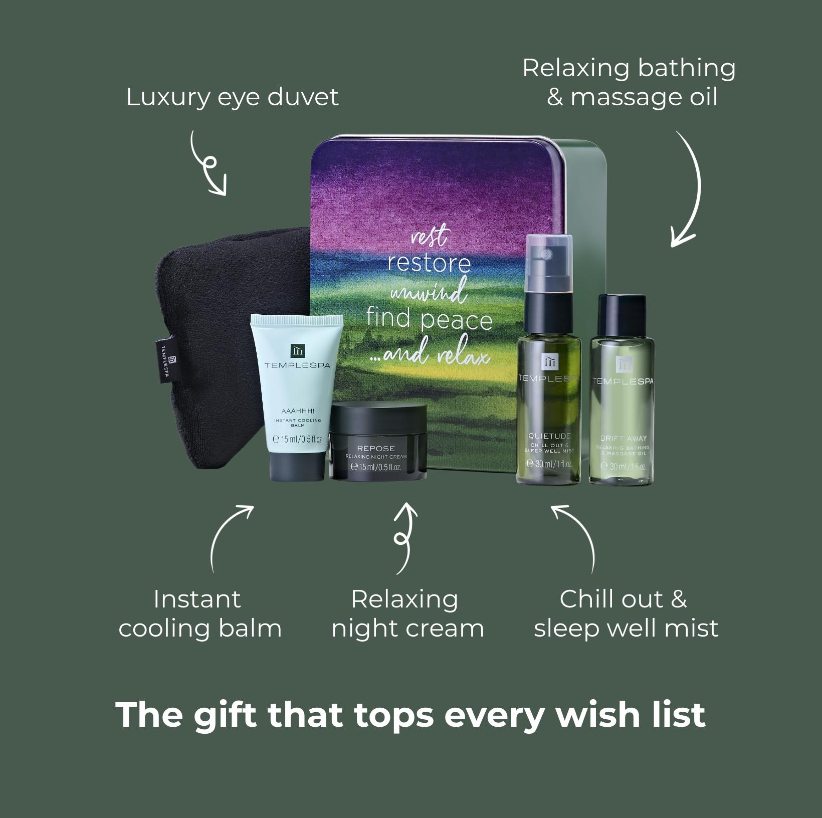 At the start of all our professional spa treatments we like to use our aromatherapy blends to set the tone, whether it’s for energising or relaxation. Add to your home spa kit our QUIETUDE Chill Out & Sleep Well Mist which is a blend of Mediterranean essential oils like lavender, vetiver and patchouli to switch from busy to calm in an instant. If your at home spa day involves a bath, whilst it’s running and the steam is rising, spritz this into the area and step into a world of relaxation.